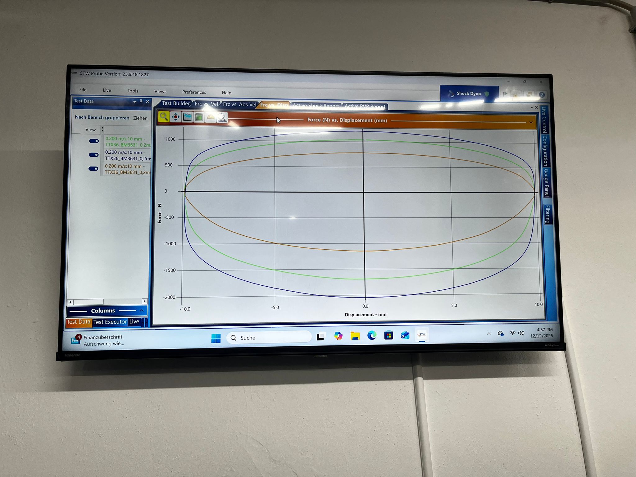 • Prüfstandslauf auf dem CTW Stoßdämpferprüfstand
